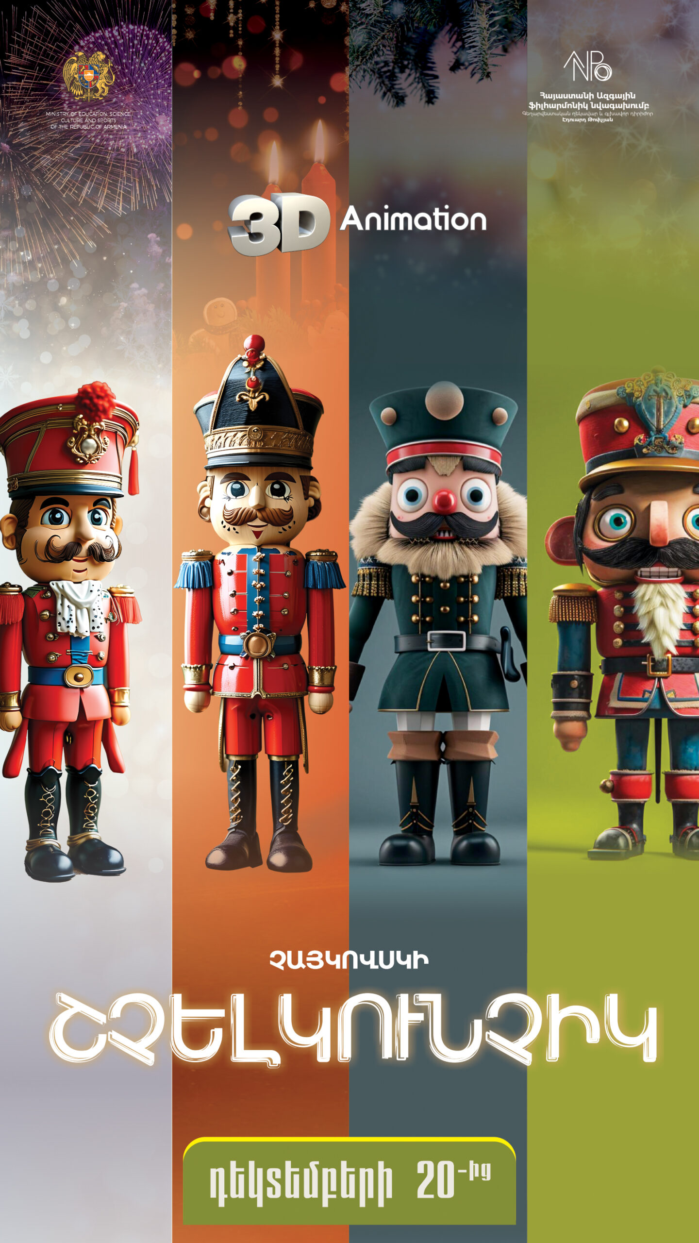 В концертном зале «Арам Хачатурян» будет представлен новый проект с роскошной 3D- анимацией и световыми эффектами – «ЩЕЛКУНЧИК» П.И. Чайковского в исполнении Национального филармонического оркестра Армении.